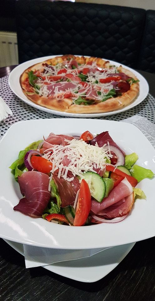 sos de rosii, sunca, salam, muschiulet, ciuperci, ardei, ceapa, rosii, carnati, masline, mozarrella